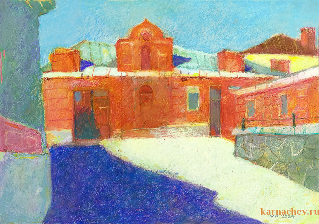 "Дворик Таганрогского Музея" - акв. бумага/ масл. пастель 42 х 60 - 2024 г.