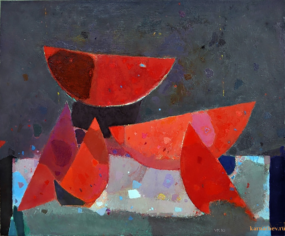 Да, Лорка, Вы правы, тонко почувствовали музыкальность картины. Фигуры ритмично выстроены таким образом, что ощущаешь вокруг тихую музыку или песню. Из-за слегка наклоненных фигур, а также наклоненных отдельных голов, кажется, что здесь поют какую-то протяженную русскую народную песню. В этой сцене присутствует настроение общего раздумья, сосредоточенности. Напряженность также есть за счет контраста синего с красным. Это делает восприятие работы более сложным.